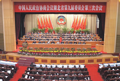 荊楚網(wǎng)消息(湖北日?qǐng)?bào)) 記者徐和平報(bào)道:荊楚大地春潮涌動(dòng),氣象萬(wàn)千。中國(guó)人民政治協(xié)商會(huì)議湖北省第九屆委員會(huì)第三次會(huì)議昨日上午在武昌洪山禮堂隆重開幕。
