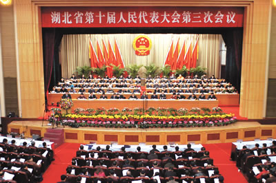 荊楚網(wǎng)消息(湖北日報(bào)) 記者余凱報(bào)道:湖北省第十屆人民代表大會第三次會議昨日上午在武昌隆重開幕。肩負(fù)全省6000萬人民重托的600多名代表聚集一堂,共同繪制湖北2005年發(fā)展藍(lán)圖。