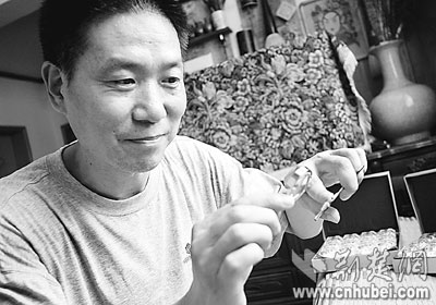 慢功出細(xì)活。童洪斌在半粒米大小的象牙片上創(chuàng)作的大熊貓,在去年舉行的武漢市國(guó)際文化產(chǎn)業(yè)博洽會(huì)上,作為禮物送給外國(guó)友人。