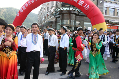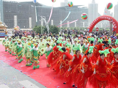 在遍布大連城100多個廣場上,形式多樣的民間文體活動,與狂歡節(jié)巡游隊伍遙相呼應(yīng)。