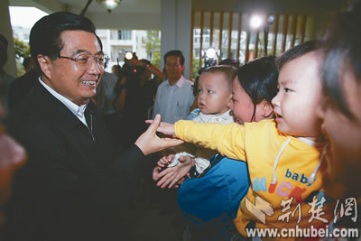 “胡爺爺好!”在武漢綠景苑節(jié)能小區(qū),小朋友們向胡錦濤總書記問(wèn)好。