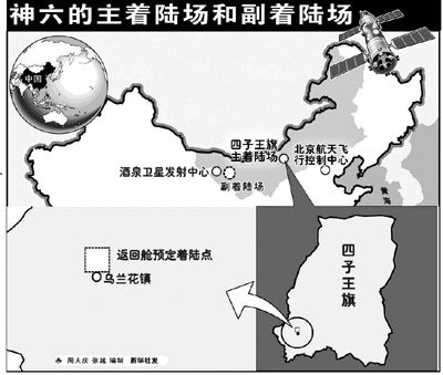 “飛船在軌飛行時間由1天變?yōu)槎嗵,使得著陸場系統(tǒng)必須全面啟用副著陸場!彼迤饎僬f。由于目前技術(shù)條件的限制,還無法對長期的氣象變化進(jìn)行精確預(yù)報,這就使得在選擇飛船“發(fā)射窗口”時,無法完全保證主著陸場的氣象條件適合降落。位于內(nèi)蒙古中部草原四子王旗的主著陸場和位于酒泉附近的副著陸場相隔1000多公里,可以起到氣象備份的作用。