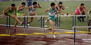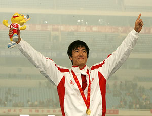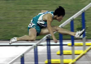 十運(yùn)會(huì)田徑比賽最精彩的大戲10月20日在奧體中心田徑場(chǎng)進(jìn)行,奧運(yùn)冠軍劉翔在萬眾矚目之中,以13秒10的好成績(jī)毫無懸念地奪得冠軍,這是他在全運(yùn)會(huì)中的第二次奪冠,也是他今年在國(guó)內(nèi)比賽中的第二好成績(jī)。(圖片來自新浪體育)