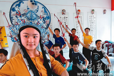 經(jīng)過3年的精心編排,武漢市黃陂區(qū)楚劇團(tuán)昨日將新編大型楚劇《少年花木蘭》搬上舞臺。該劇反映少年花木蘭立志報國、熱愛家鄉(xiāng)的情懷,將成為青少年教育的生動教材。這是排練時的情景。