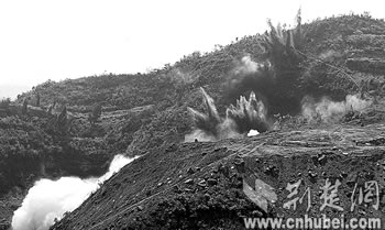 昨日上午10時30分,在一聲巨響中,宜昌市點軍區(qū)橋邊鎮(zhèn)黃家棚村的一座山頭劇烈地搖晃了幾下,整座山土石松動,這是宜萬鐵路完成的一起大型山體爆破施工項目。