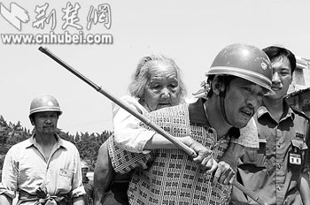 當?shù)厝罕姷玫绞枭ⅲ?0歲的王小英老人被轉移到安全地帶。