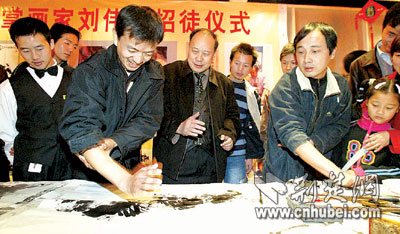 昨日上午10點(diǎn)半,武昌中南路上一家酒店迎來了30名特殊的客人。他們遠(yuǎn)的來自黃岡、荊門,特地趕來參加江城掌畫奇人劉偉新的現(xiàn)場招徒會(huì)。