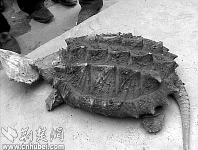 荊楚網(wǎng)消息(湖北日?qǐng)?bào))通訊員唐科達(dá)報(bào)道:22日,京山縣雁門(mén)口鎮(zhèn)阮溝村村民魏作華在清理魚(yú)塘?xí)r驚奇發(fā)現(xiàn)一只上面長(zhǎng)滿(mǎn)犄角的大鱉。這只大鱉牙齒鋒利,呈灰綠色,體重8.4公斤。