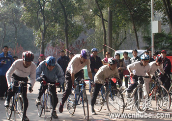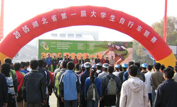 荊楚網(wǎng)消息(記者吳彬彬)2005湖北省第一屆大學(xué)生自行車(chē)聯(lián)賽今天上午在華中科技大學(xué)拉開(kāi)帷幕,共有來(lái)自華中科技大學(xué)、中國(guó)地質(zhì)大學(xué)(武漢)、武漢大學(xué)、武漢理工大學(xué)、華中農(nóng)業(yè)大學(xué)、湖北工業(yè)大學(xué)和湖北經(jīng)濟(jì)學(xué)院的23支隊(duì)伍前來(lái)參賽。