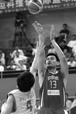 今晚,男籃的開局相當(dāng)不錯,第一節(jié)只讓對手得了9分,自己拿到23分。局勢是在第三節(jié)惡化的,由于犯規(guī)過多,姚明這一節(jié)基本沒上場,結(jié)果男籃居然在5分半鐘內(nèi)一分不得,澳大利亞隊趁機(jī)打出16比3的高潮,將分差縮小到1分。第四節(jié),雙方展開拉鋸戰(zhàn),姚明和大郅輪番攻擊得手,帶領(lǐng)男籃始終壓制著對手,直到最后5秒的那次制勝一投。