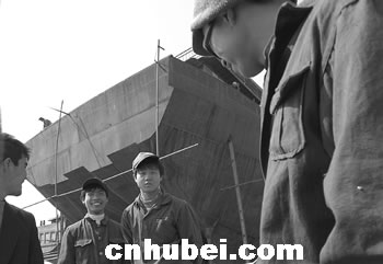 在武漢長江和漢江的江灘上,一些沒有造船資質(zhì)證書的私人船東,招募了一批來自河南的農(nóng)民工,建造了數(shù)十條貨輪。這些農(nóng)民工收入低微,生活和工作條件都很艱苦。