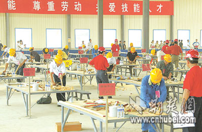 荊楚網(wǎng)(楚天都市報(bào)) (記者 黃宏 通訊員 鄒清選 攝影記者 劉中燦) 鑿子叮叮當(dāng)當(dāng),刨屑紛紛揚(yáng)揚(yáng),27名木工各自做著同樣的木隔扇———這一幕,并非出自哪個(gè)木工廠,而是湖北省首屆建筑業(yè)百萬(wàn)農(nóng)民工技能大賽的現(xiàn)場(chǎng)。