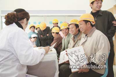 昨日和他一起接受免費體檢的,還有另外在百步亭從事建設的400多名農民工。