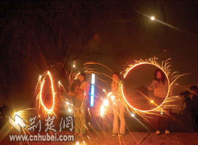 中山公園里,一對(duì)對(duì)情侶紛紛登上湖中的小舟,在燭光中許下愛情的誓言。25歲游客小敏舉著燈籠,偎依在男友的懷里,羞澀地笑著告訴記者:“今天我同意嫁給他了,這是我們金豬年最大的喜慶!