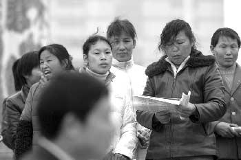 在武漢2007春季首場農(nóng)民工招聘會上,幾位來自黃梅的農(nóng)民工在私下討論:“今年招工才剛開始,要先比較哪家更好。”