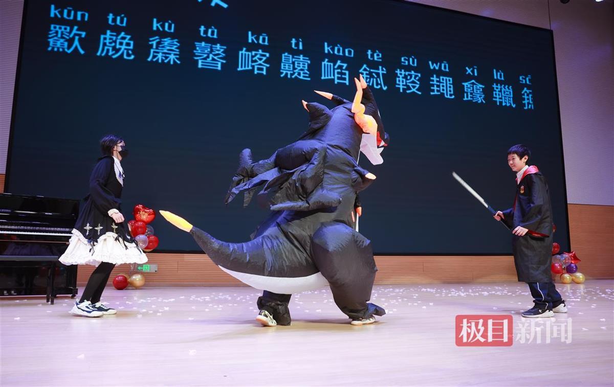 704班學(xué)生演了一出《達(dá)拉崩吧》話劇,騎士、公主、國(guó)王、恐龍、馬的服裝是他們定的,炫酷搞笑的視頻布景也是他們做的?!拔覐男⊥婢幊?,這個(gè)還好啦,演恐龍的寇樂(lè)芊也有幫我剪視頻?!逼渲猩砑鎸?dǎo)演、舞美設(shè)計(jì)、騎士扮演者三職的劉致銘說(shuō)。“我班孩子演《守護(hù)之光》小品,就找劇本我?guī)土它c(diǎn)忙,其他都是他們自己安排。上周五全校彩排我第一次看完全劇,發(fā)現(xiàn)他們好有創(chuàng)意,好會(huì)演。”705班班主任徐怡楠驕傲地說(shuō),每次活動(dòng)都發(fā)現(xiàn)許多學(xué)生的閃光點(diǎn),正如“走過(guò)冬天”藝術(shù)節(jié)的slogan(口號(hào))所說(shuō),在活動(dòng)中,青春多了一份厚實(shí),人生多了一份財(cái)富。