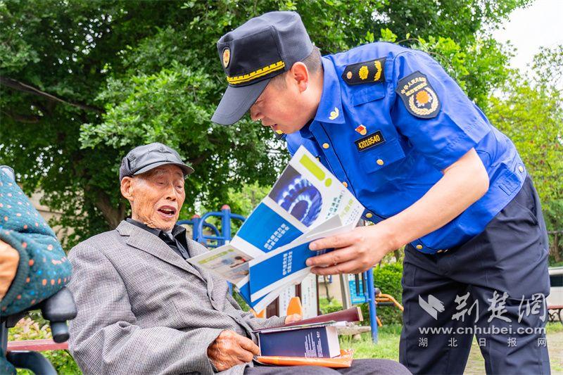 城管部門在磨山小區(qū)開展燃?xì)獍踩麄鳎榻B“瓶改管”工作情況。通訊員供圖