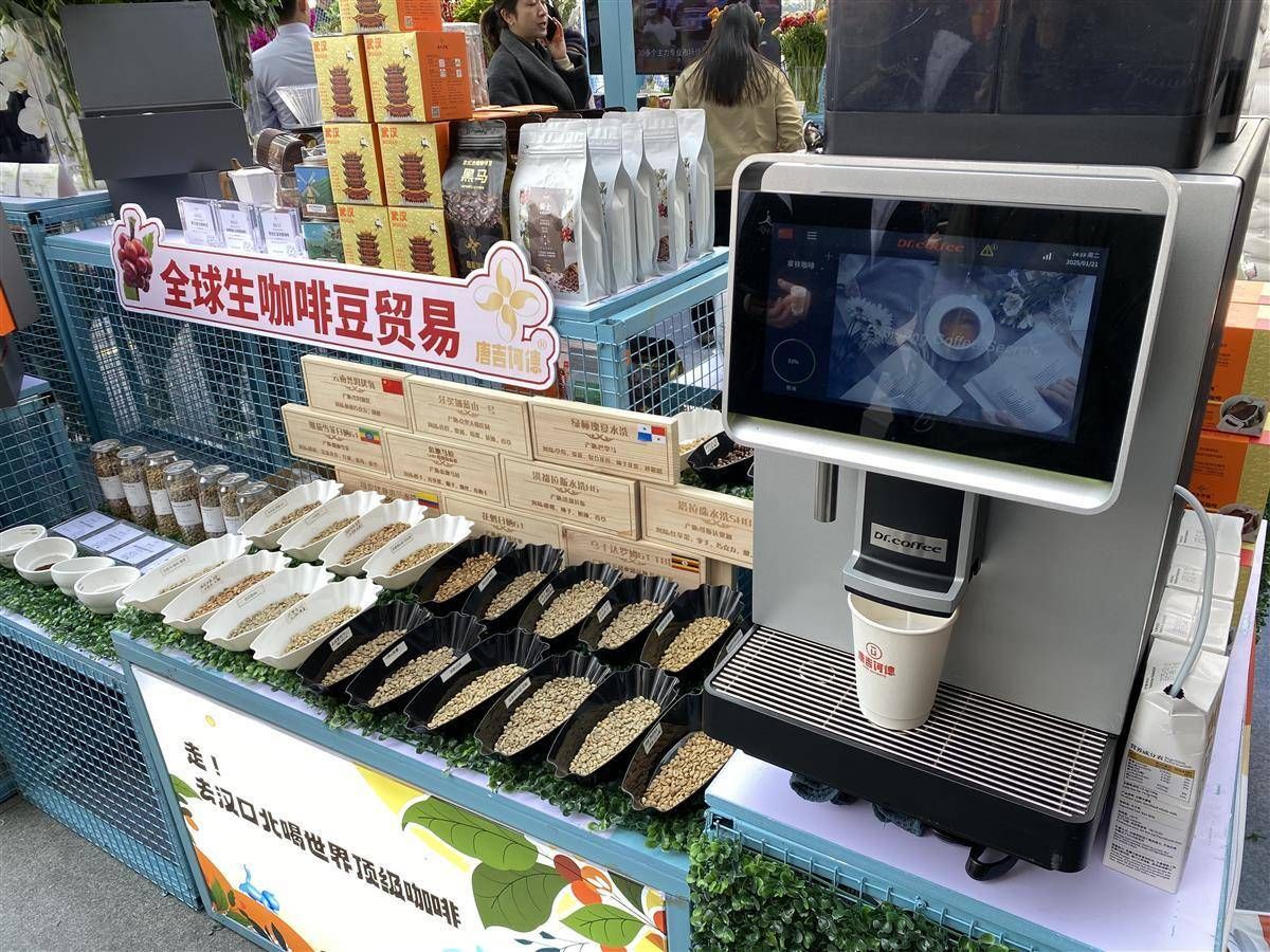 圖為武商夢(mèng)時(shí)代“國潮好物市集”漢口北國際貿(mào)易城展示的自動(dòng)咖啡機(jī)。(記者劉天縱攝)