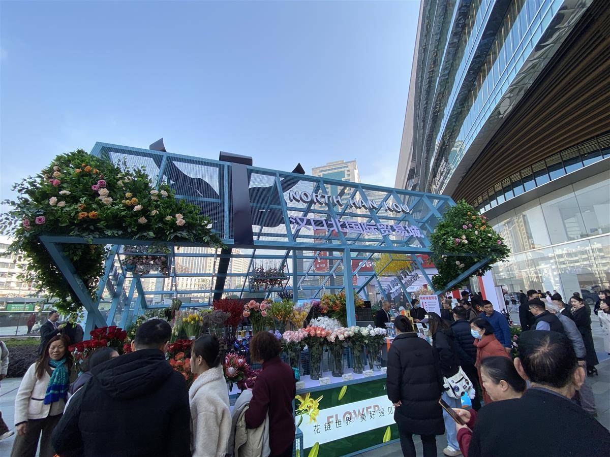 圖為武商夢(mèng)時(shí)代“國潮好物市集”漢口北國際貿(mào)易城鮮花展區(qū)。(記者劉天縱攝)