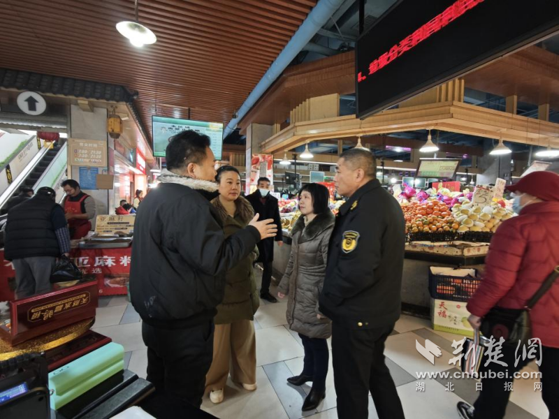 嚴密開展農貿市場“優(yōu)秩序保安全迎新年”專項督查行動,分管領導帶隊檢查了東湖景園市場,重點檢查了市場內外環(huán)境衛(wèi)生、長江漢江魚禁售、計量電子秤、保供穩(wěn)價、消防安全等情況。