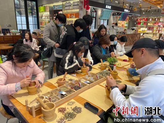 體驗完炸圓子,臺胞們來到曇華林,在葉開泰草本茶咖·文創(chuàng)手作店動手自制香囊,并參觀武昌城史館,深入了解武昌古城的文化源流及發(fā)展變遷。