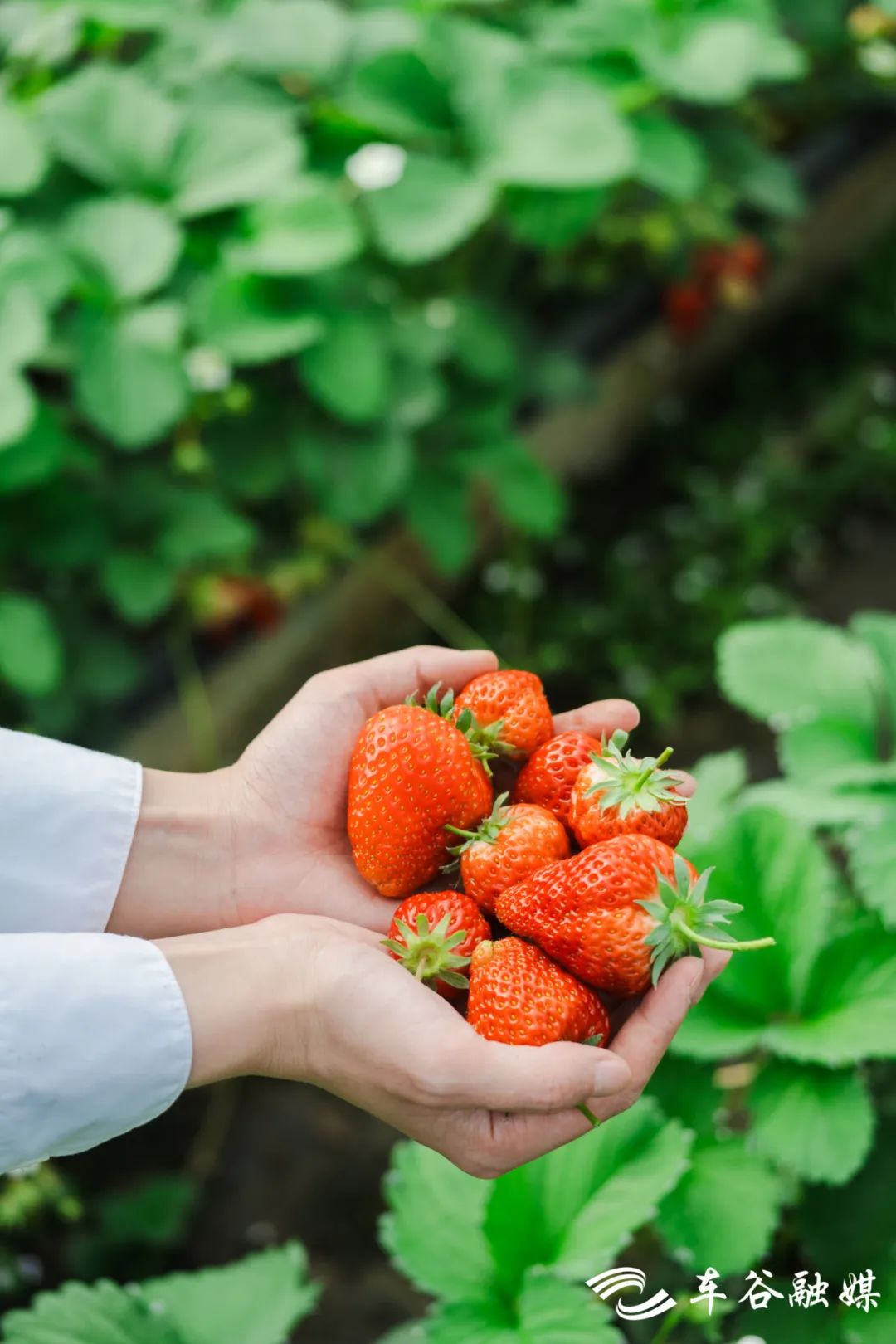 提上小籃子,穿梭于田地間,一顆顆紅鮮欲滴的草莓“探”出頭來,個(gè)大飽滿、晶瑩剔透,一口咬下去,果香四溢、甘甜無比。