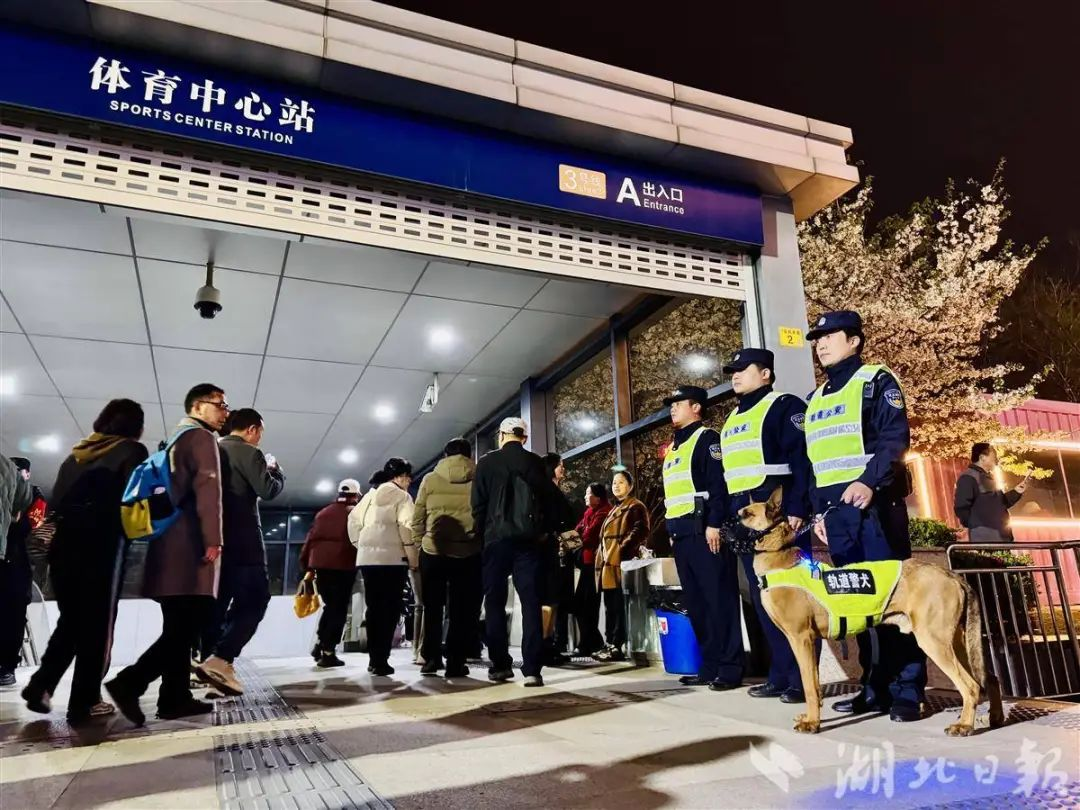 晚上10時(shí)許,隨著演唱會(huì)結(jié)束,萬(wàn)人疏散大考正式開(kāi)始。武漢體育中心出口同時(shí)亮起引導(dǎo)牌,執(zhí)勤民警用LED燈牌組成“方向指引”,將人流精準(zhǔn)導(dǎo)向公交、地鐵、出租車(chē)等不同區(qū)域。