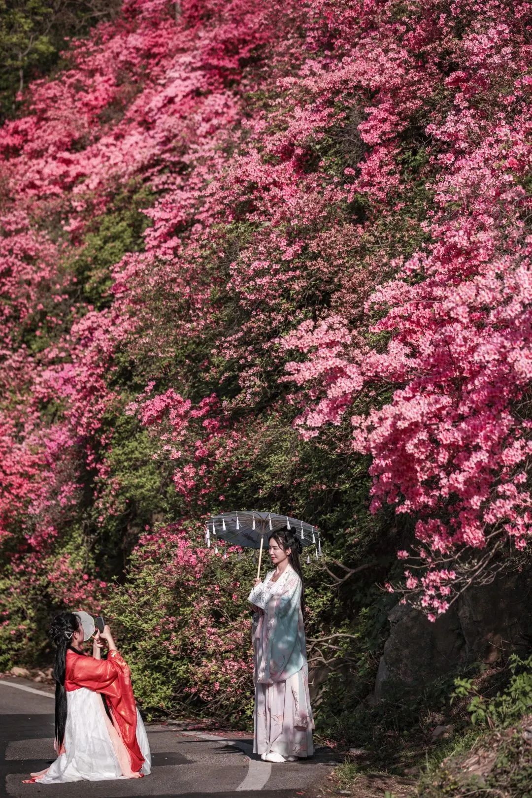 武漢市文化和旅游局,贊1165“人間仙境云霧山,層巒疊嶂映紅天”,木蘭云霧山的杜鵑花以映山紅為主,從3月中旬開(kāi)始,萬(wàn)畝野生紅杜鵑競(jìng)相綻放,春風(fēng)吹過(guò),此起彼伏,如霞似火,嫣然一片杜鵑花的海洋。