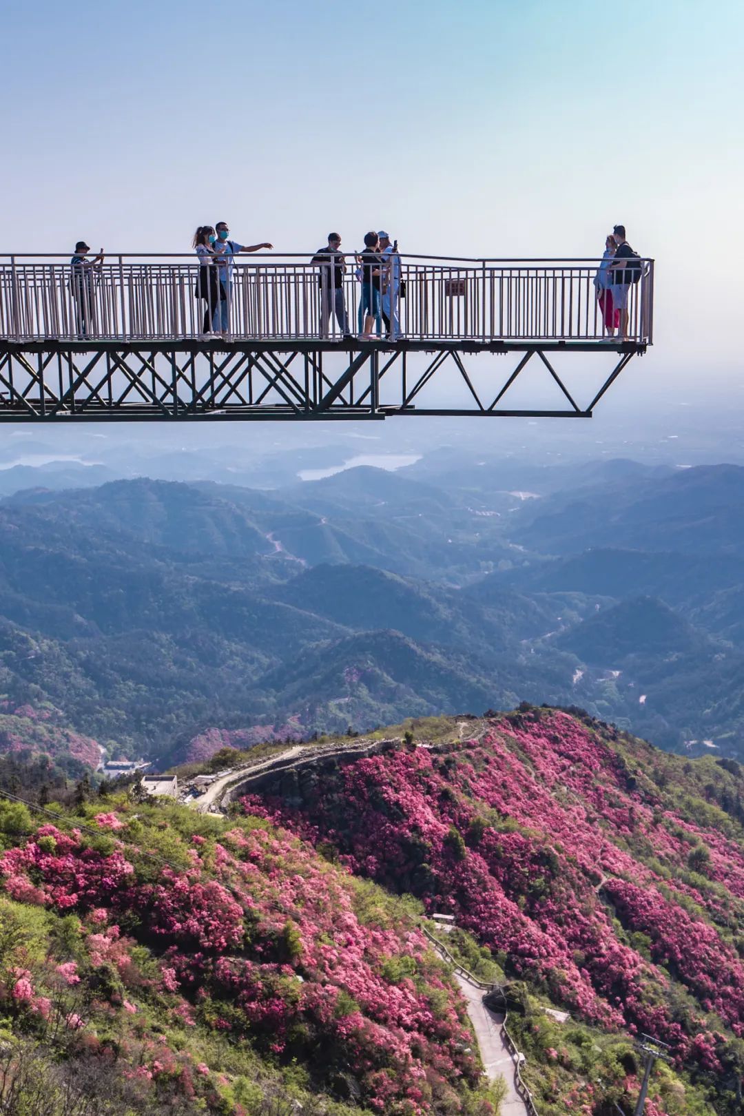 恐高慎入!向外懸挑81.9米的玻璃觀景臺(tái)一度打破吉尼斯世界紀(jì)錄,腳下是709米垂直深淵,萬(wàn)畝杜鵑花海盡收眼前!敢不敢站上玻璃裂紋特效區(qū)?
