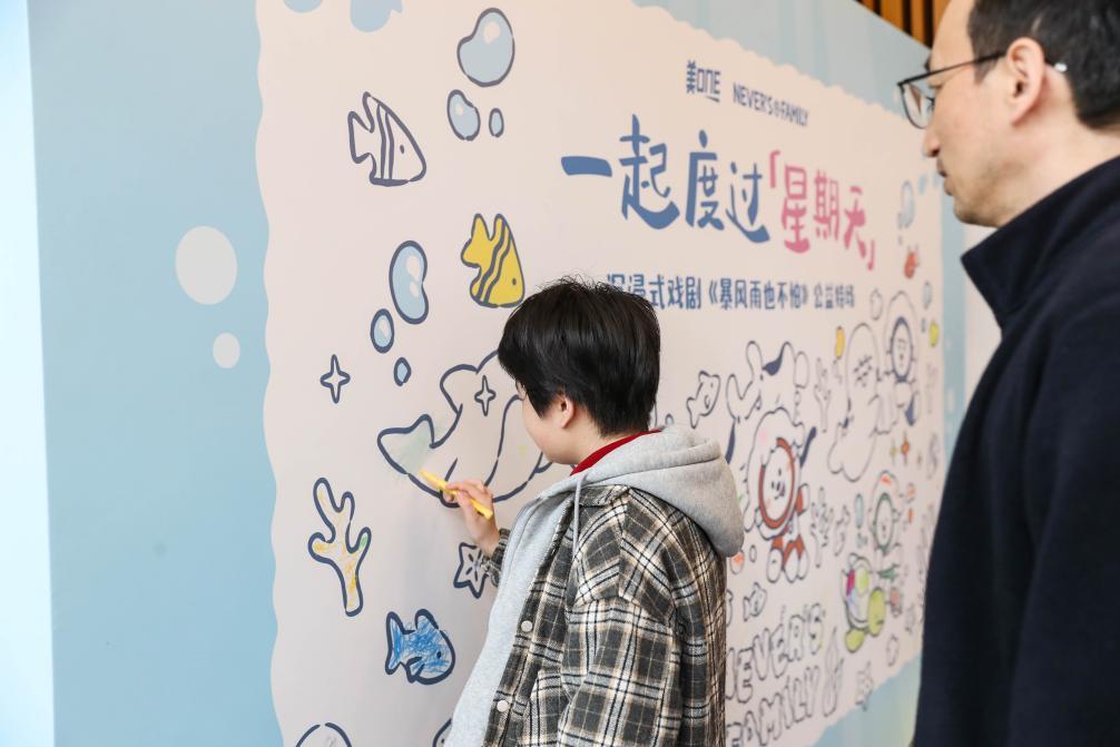 演員與自閉癥兒童互動許多家長在演出結(jié)束后與現(xiàn)場的老師、演員們交流,他們表示:“這次戲劇觀演,不僅給孩子們帶來全新的體驗,更是他們成長路上意義非凡的一課?!敝档靡惶岬氖?,這些孩子同時也是才華橫溢的“小畫家”。戲劇觀演期間,美ONE公益在上海兒童藝術(shù)劇場同步舉辦“星期天畫廊”公益畫展,展出由13位自閉癥兒童愛心捐贈的繪畫作品,吸引了眾多觀眾前來觀展打卡。