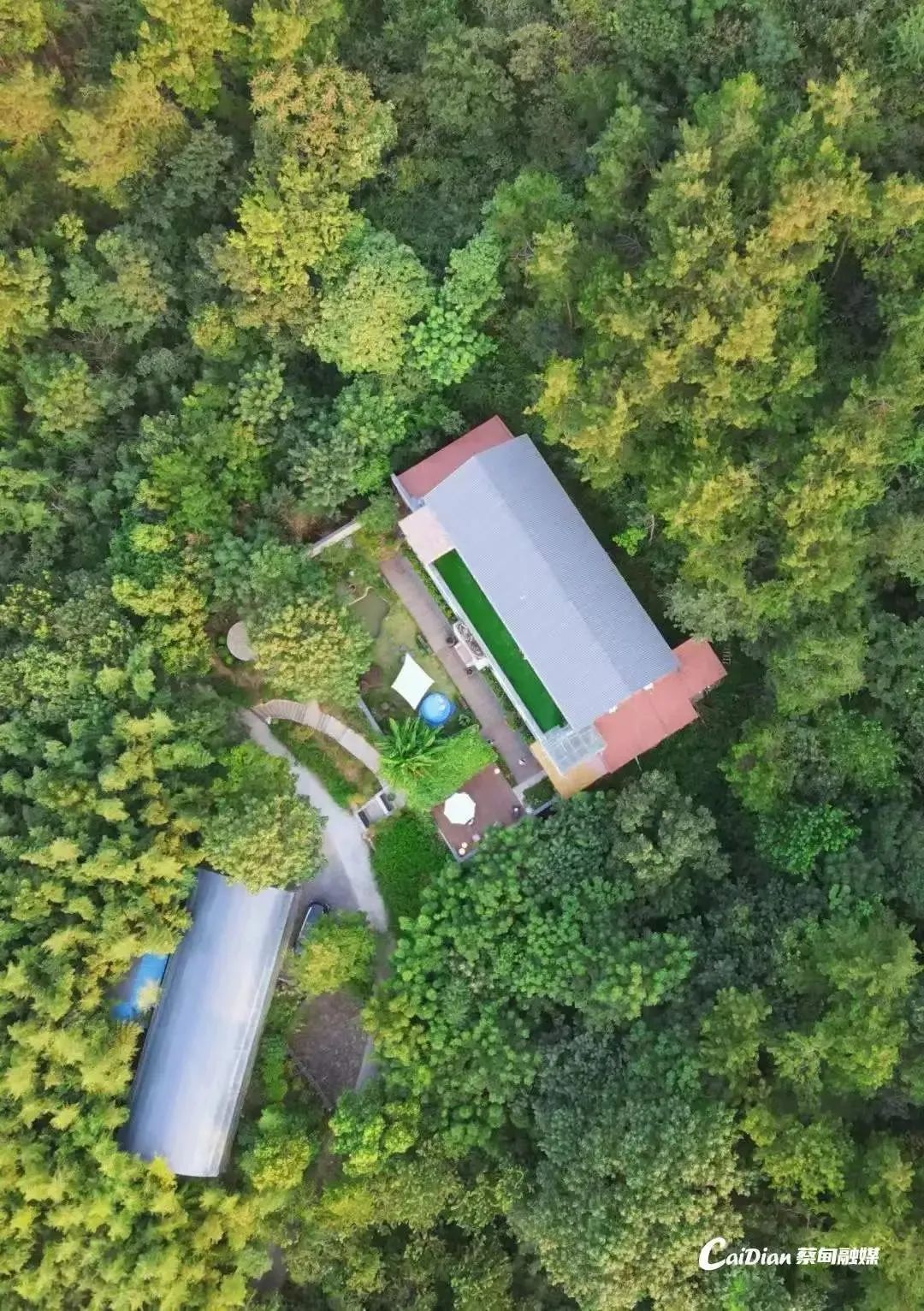 九真山腳下,隱匿在竹海森林之中,私密而小眾。民宿建筑取意“花開有時(shí),知音難覓”——主樓如綻放的夏花般舒展,庭院中蜿蜒的水系暗合“高山流水”的韻律。