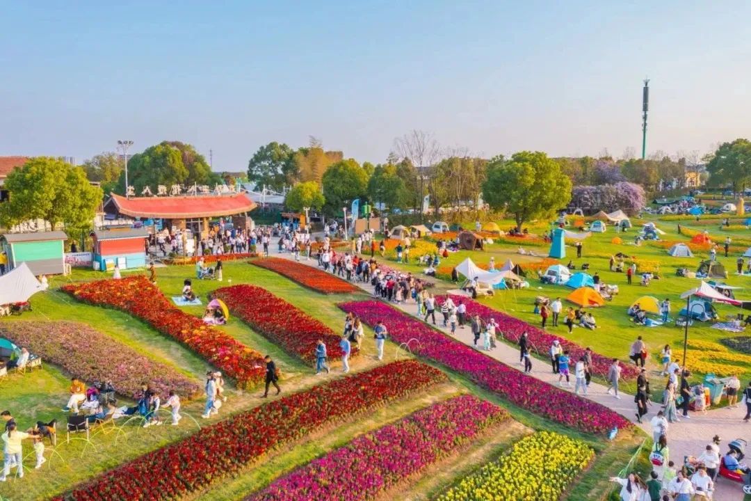 五月的武漢花博匯,宛如一幅絢麗的春日畫卷。馬鞭草紫浪翻涌,玫瑰、月季嬌艷欲滴,大花蔥亭亭玉立,繽紛花海成為游客們的 “打卡圣地”。一頂頂帳篷點(diǎn)綴其間,人們?cè)诖隋忮死寺汗猓苗R頭定格美好瞬間。景區(qū)內(nèi)人頭攢動(dòng),拍照的快門聲此起彼伏,熱門打卡點(diǎn)前排隊(duì)等候的游客隊(duì)伍蜿蜒如長(zhǎng)龍。