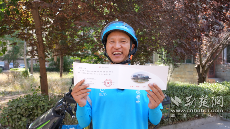 荊楚網(wǎng)(湖北日報網(wǎng))訊(通訊員 易曄)“很多人會覺得,39歲再去讀大學(xué)可能有點晚了,但對我來說,現(xiàn)在一切都剛剛好,我期待穿上學(xué)士服的那天?!?月21日,餓了么藍騎士馮天雷正準備結(jié)束一天跑單任務(wù)時,收到了一則包裹抵達提醒,是來自西南科技大學(xué)數(shù)字傳媒藝術(shù)專業(yè)的錄取通知書。