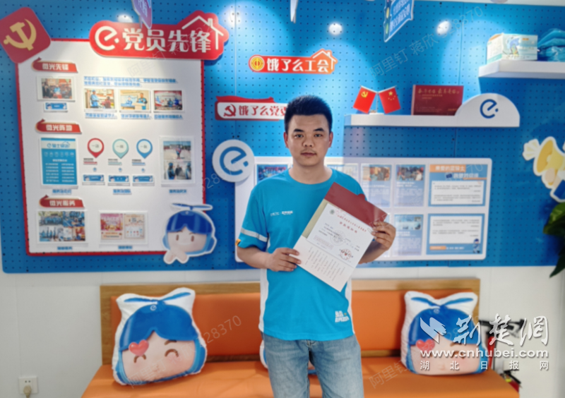 餓了么上海藍騎士程永亮收到大學(xué)的錄取通知書。通訊員供圖