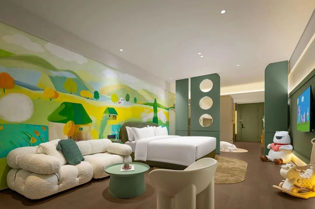 29間主題客房承包全家歡笑,從蘑菇王國到兔子先生,從綠野仙蹤到夢樂島,每一扇門后都藏著無盡的驚喜與想象??头烤拇蛟鞂偻け诋嫞路鹱∵M(jìn)絢爛多彩的童話世界。