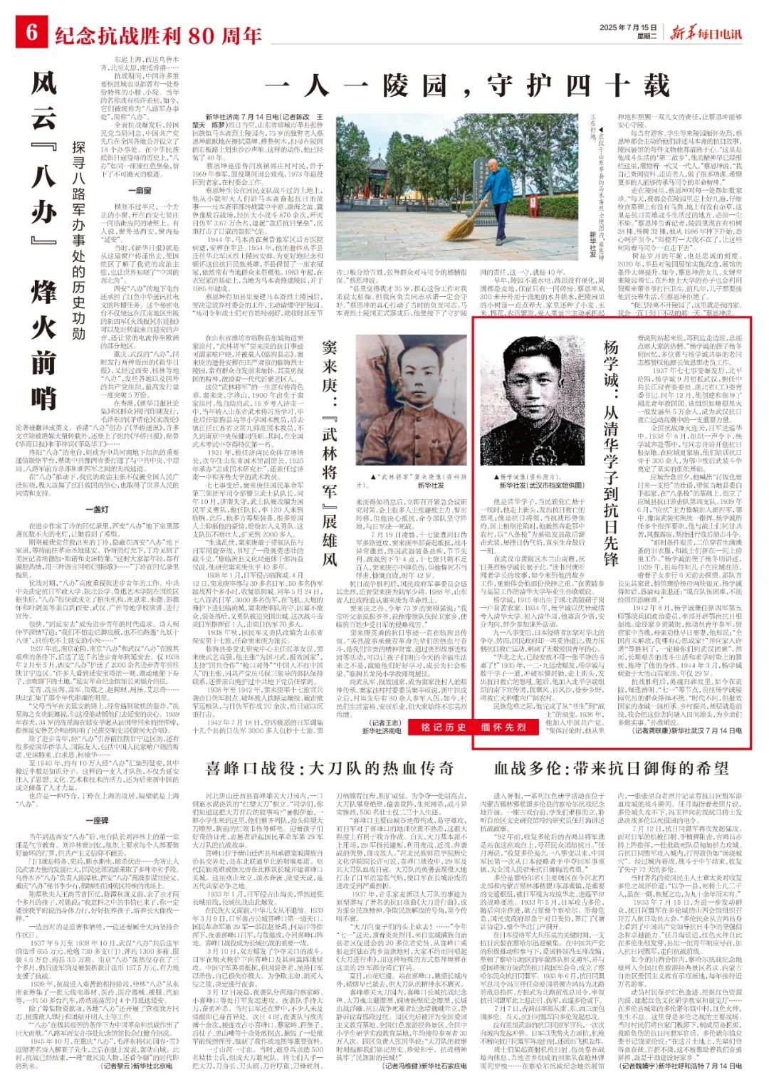 報(bào)道講述了黃陂籍抗日英烈楊學(xué)誠(chéng)的傳奇歷程