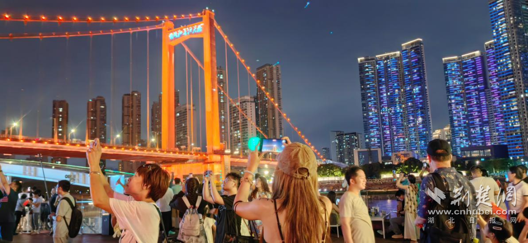 營(yíng)員們將鏡頭對(duì)準(zhǔn)兩江四岸夜景。通訊員供圖