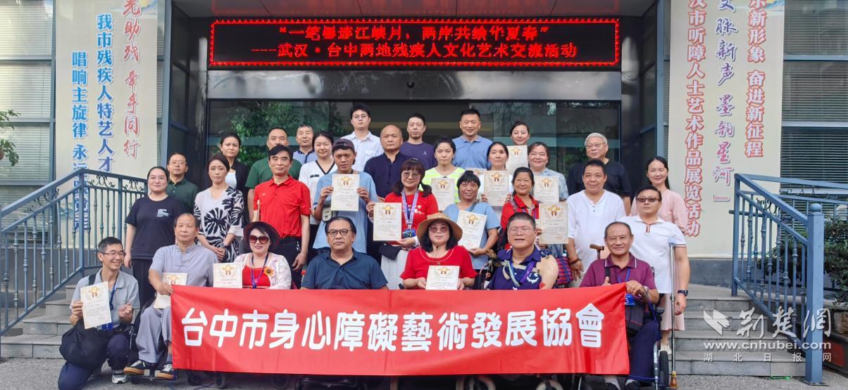 現(xiàn)場臺灣嘉賓們與武漢市殘疾人藝術(shù)館共同為 “武漢市·臺中市殘障人士文化藝術(shù)交流園地”揭牌,雙方表達了希望在文化藝術(shù)領(lǐng)域深入交流合作的意愿。