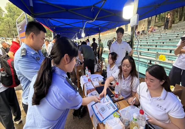 荊楚網(wǎng)(湖北日報網(wǎng))訊(通訊員 方茜)9月1日,武漢大學迎來新生報到高峰。為筑牢校園安全屏障,武昌區(qū)珞珈山街道平安建設(shè)辦聯(lián)合轄區(qū)派出所、武漢大學保衛(wèi)部,以“青春無毒·反詐同行·安全護航”為主題,在梅園操場、工學部體育館等新生集中區(qū)域開展系列安全宣傳活動,為3000余名新生及家長送上“安全第一課”。