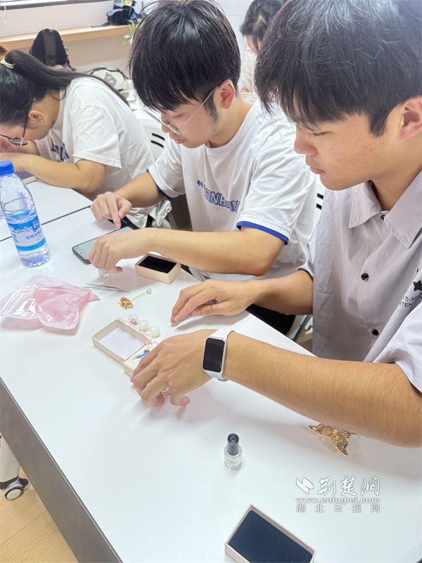 活動尾聲,大家手持親手制作的胸針作品合影留念,一張張燦爛的笑臉寫滿了成就感與喜悅。一名青年感慨道:“平時很少有機會接觸這樣的傳統(tǒng)工藝,今天既學到了七夕文化知識,又親手體驗了螺鈿技藝,覺得特別有意義!”