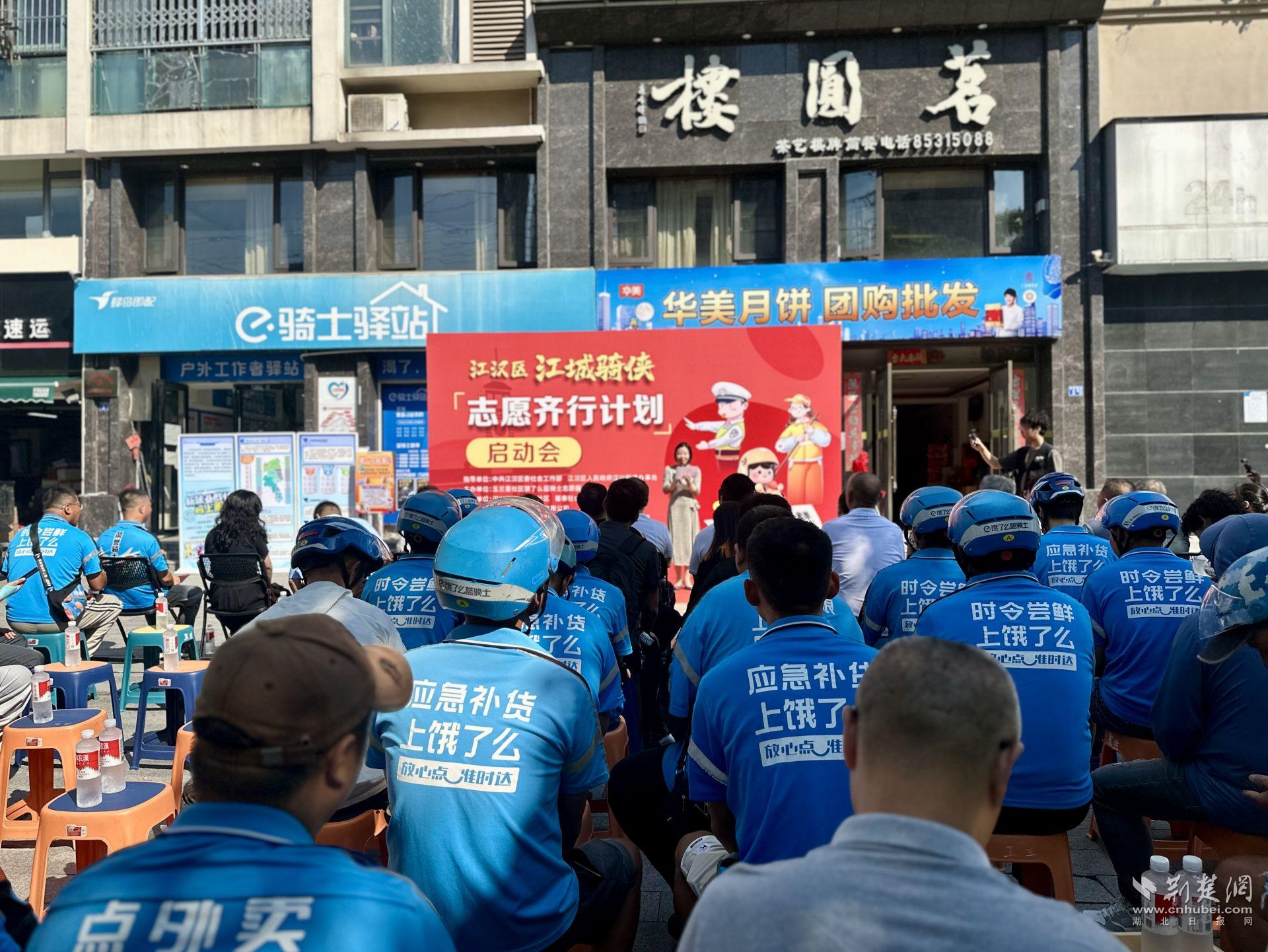 荊楚網(wǎng)(湖北日?qǐng)?bào)網(wǎng))訊(記者 何婧 通訊員 黃劍平 宗昌瑞 劉心悅)9月16日上午,江漢區(qū)第六屆“社志同行·益匯江漢”公益創(chuàng)投項(xiàng)目——“江城騎俠·志愿齊行計(jì)劃”在紅旗渠路餓了么藍(lán)騎士驛站正式啟動(dòng)。武漢市委社會(huì)工作部、江漢區(qū)委社會(huì)工作部、區(qū)總工會(huì)等相關(guān)單位負(fù)責(zé)人,以及餓了么武漢分公司、愛心企業(yè)和社會(huì)組織代表齊聚一堂,與騎手志愿者們共同見證這一公益新起點(diǎn)。