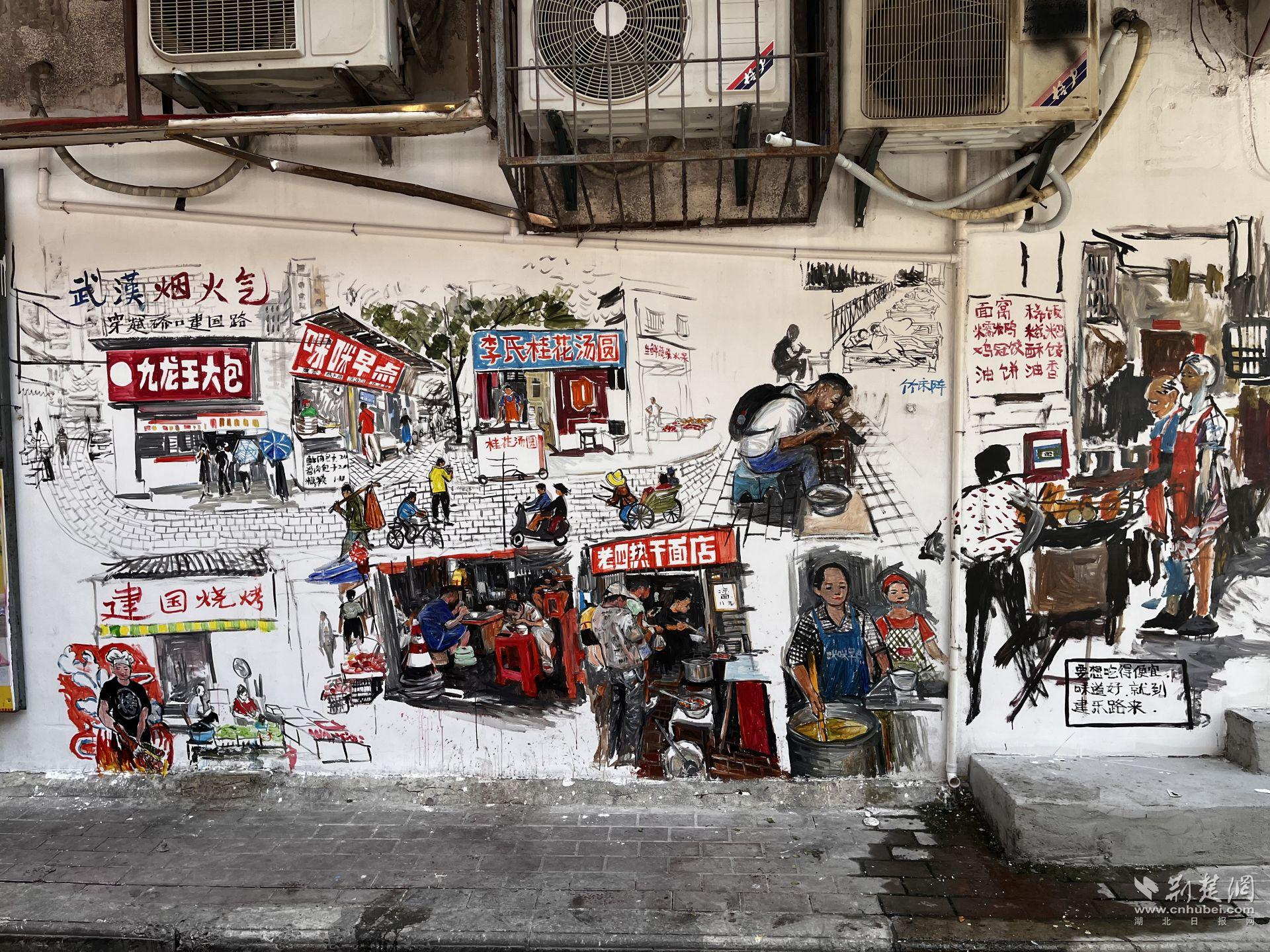 今年春天,榮華二路出現(xiàn)了一幅美食長(zhǎng)卷,熱干面、豆皮、燒梅被畫(huà)得活色生香。
