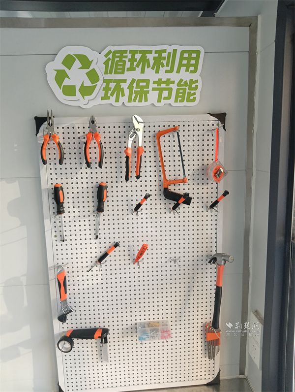 曾經用于疫情防控的核酸亭也煥發(fā)新生,貼上新膜、掛上“堤”碳小屋招牌后,這里成了社區(qū)共享空間。工具架上擺放著扳手、螺絲刀等共享工具,展示柜里陳列著奶粉罐改造的多肉花盆、舊牛仔褲縫制的時尚挎包。不少居民自豪地說:“在我們這兒,垃圾能變寶藏!”