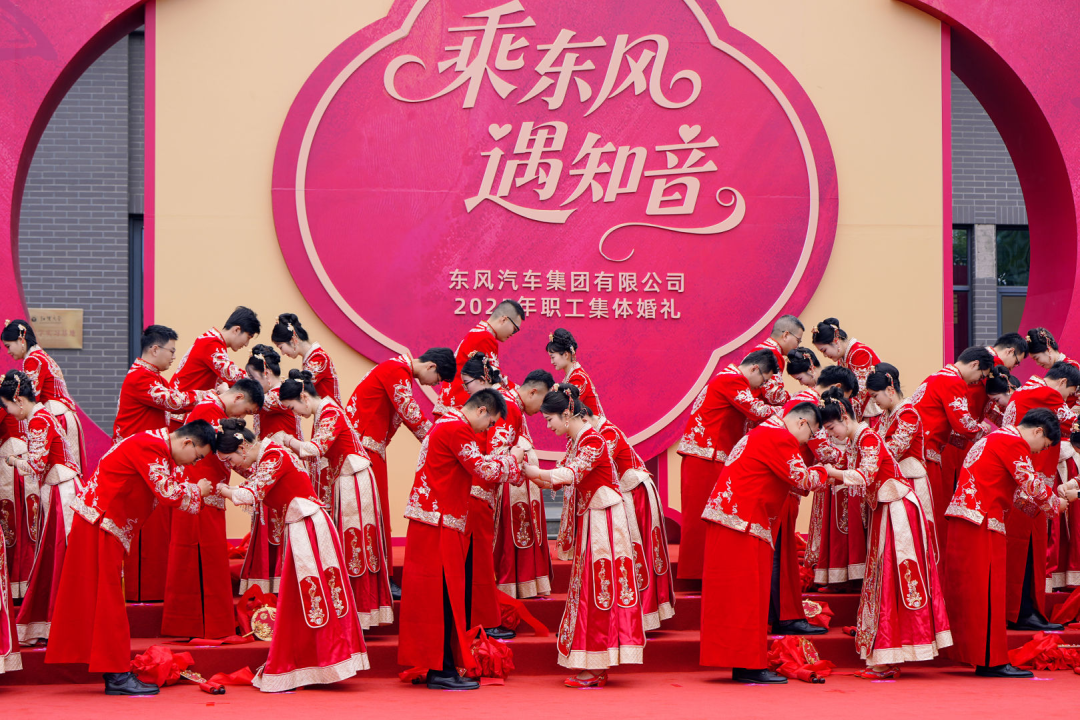 9月20日,東風(fēng)汽車2025年職工集體婚禮在武漢經(jīng)開區(qū)湯湖文化宮舉行。40對(duì)新人在親友和嘉賓的見(jiàn)證下,攜手穿越“幸福之門”,共同步入婚姻的殿堂,開啟人生新篇章。