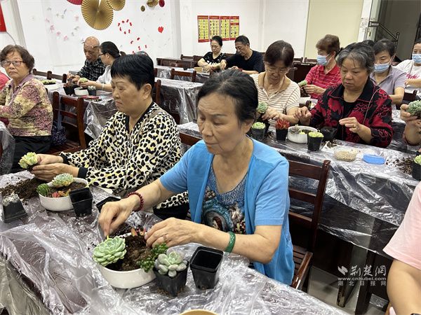多肉微景觀制作環(huán)節(jié),在專業(yè)園藝師的指導(dǎo)下,居民們專注搭配多肉植株、營養(yǎng)土與彩色鋪面石,巧妙裝點小花盆與玉兔玩偶,不時交流種植心得,詢問養(yǎng)護技巧。不一會兒,一個個融合綠意與中秋意象的微景觀陸續(xù)完成,翠綠植株與靈動玉兔相映成趣,洋溢著溫馨與創(chuàng)意。
