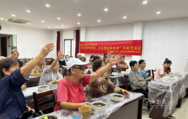 “解碼月餅文化”環(huán)節(jié)則從舌尖上展現(xiàn)中秋韻味?,F(xiàn)場展示了廣式蓮蓉、蘇式鮮肉、京式自來紅等各地特色月餅,講解其象征意義——圓形寓意“闔家團圓”,五仁寄托“五谷豐登”的美好愿景,并分享了月餅從唐代“胡餅”到現(xiàn)代多元口味的演變歷程。此外,活動還介紹了傳統(tǒng)祭月儀式中的供品擺放、宮燈點燃、祭文誦讀等禮儀細節(jié),以及浙江錢塘觀潮、安徽徽州舞草龍、廣東潮汕燒塔等地域民俗,讓居民領(lǐng)略到中秋文化在不同水土中綻放的獨特魅力。