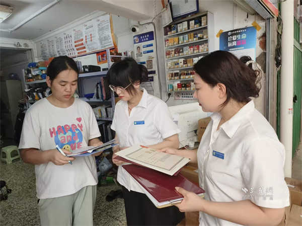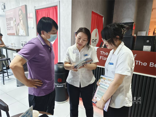 工作人員上門(mén)對(duì)商戶做政策宣傳。 通訊員供圖