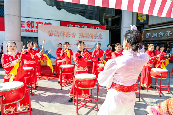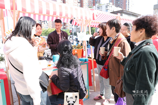 活動設置互動體驗與文藝表演兩大區(qū)域,現(xiàn)場熱鬧非凡?;芋w驗區(qū)的“DIY調(diào)飲攤”前,居民們親手調(diào)配創(chuàng)意茶飲,在沖泡間感受茶飲的多樣魅力;氛圍打卡點深受年輕居民青睞,大家紛紛拍照留念,并通過社交媒體分享活動盛況,實現(xiàn)線下體驗與線上傳播的有效聯(lián)動。