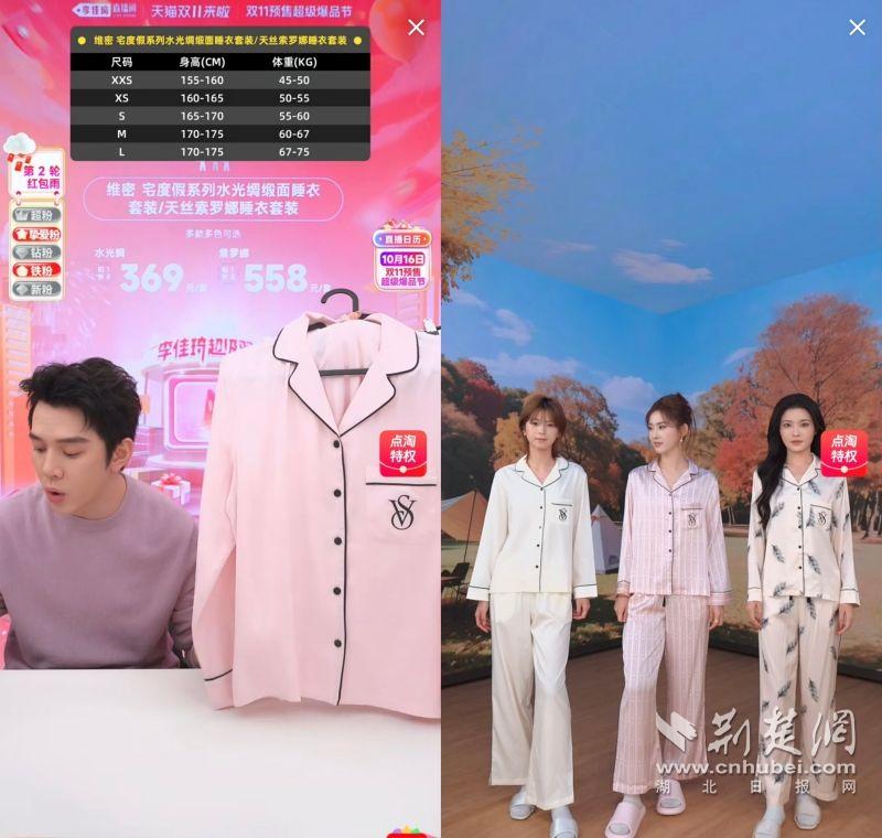 內衣與家居服成為今年大促李佳琦直播間增長最快的細分服飾品類,以維秘為例,首輪上架的6款單品中有3款迅速售罄,品牌整體銷售增長超過200%,其中天絲棉柔睡衣與輕舒絨睡衣成為大促“現(xiàn)象級爆款”。