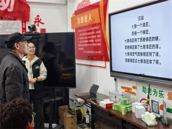 活動以繞口令熱身開場。曾講授量子力學(xué)的老教授們,此刻神情專注地逐字讀著"炮兵怕把標(biāo)兵碰",略顯生澀卻認真的模樣,引得現(xiàn)場歡笑聲與掌聲不斷,氣氛瞬間活躍起來。